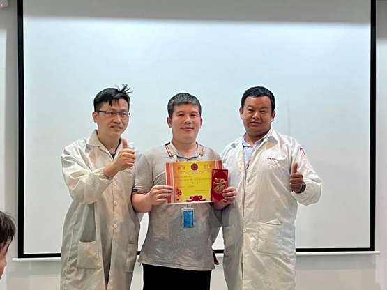 會(huì)議開(kāi)始后,主持人首先介紹會(huì)議內(nèi)容,并帶領(lǐng)大家對(duì)第一階段TPM開(kāi)展的活動(dòng)及TWI結(jié)果進(jìn)行了精彩回顧。隨后進(jìn)入到激動(dòng)人心的頒獎(jiǎng)環(huán)節(jié),華南工廠領(lǐng)導(dǎo)為3個(gè)優(yōu)秀團(tuán)隊(duì)進(jìn)行了頒獎(jiǎng)以及與TWI優(yōu)質(zhì)的培訓(xùn)文檔成員合影。
