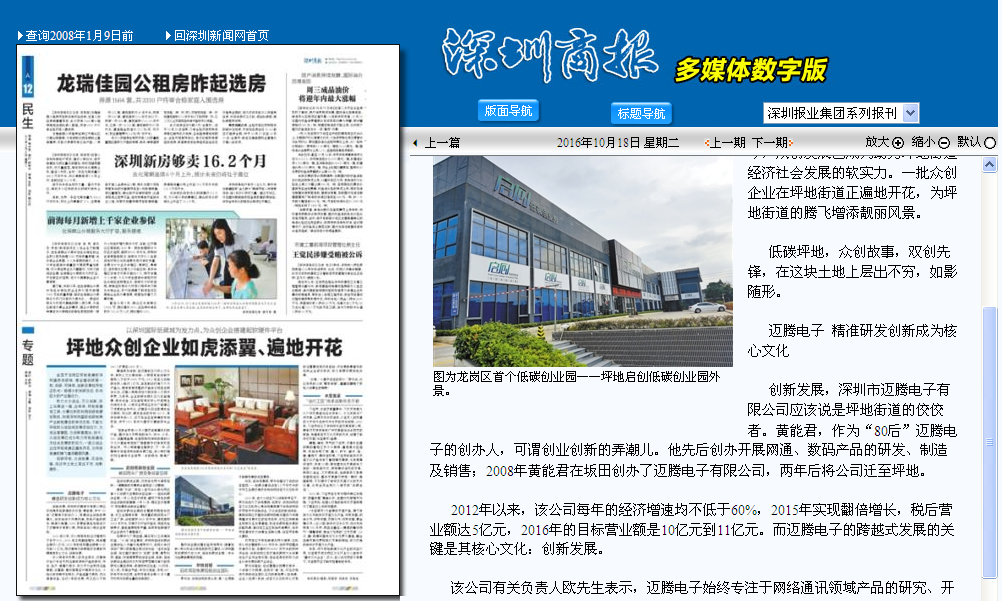 創(chuàng)新發(fā)展,深圳市邁騰電子有限公司應(yīng)該說是坪地街道的佼佼者。黃能君,作為“80后”邁騰電子的創(chuàng)辦人,可謂創(chuàng)業(yè)創(chuàng)新的弄潮兒。他先后創(chuàng)辦開展網(wǎng)通、數(shù)碼產(chǎn)品的研發(fā)、制造及銷售;2008年黃能君在坂田創(chuàng)辦了邁騰電子有限公司,兩年后將公司遷至坪地。