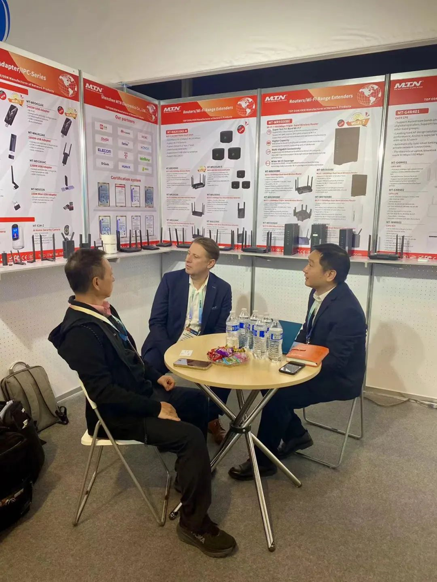 展會期間,邁騰電子以其卓越的產(chǎn)品設(shè)計成為展會的一大亮點,Wi-Fi 7 路由器、WiFi 7 AP、Wi-Fi 6路由器、CAT4/5 CPE/MIFI等新品吸引了眾多客戶青睞。
