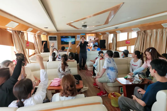 乘坐快艇,