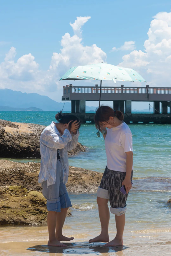 卷起褲腳,踩著細(xì)沙 踏浪奔跑